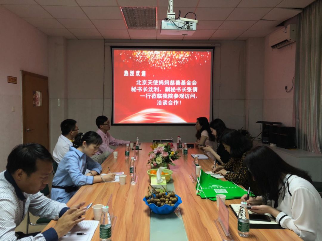 4月11号下午3时,北京天使妈妈基金会秘书长沈利、副秘书长张倩一行到我院进行参观调研以及合作洽谈。我院创始人肖传国教授代表医院亲自接待了代表团,医院医疗副院长付友增教授、行政院长张蕾娜等参加了合作洽谈会,双方就合作事项开展了讨论和交流。